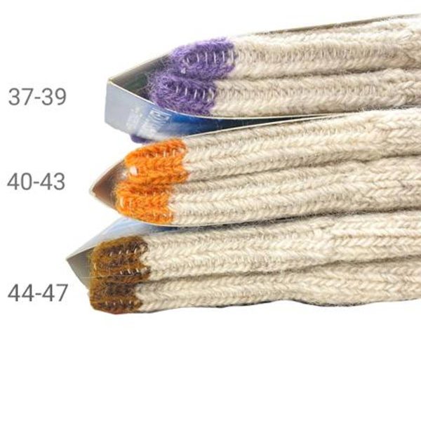 Sokken har farge i toppkant for å skille på størrelsene.