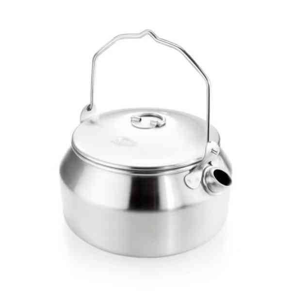 Laget i robust rustfritt stål som tåler bruk over bål. Sammenleggbart håndtak gjør den enkel å pakke ned og kan også brukes til oppheng. Lokket har eget sammenleggbart håndtak, og volummerking på innsiden gjør det enkelt å måle riktig mengde vann.