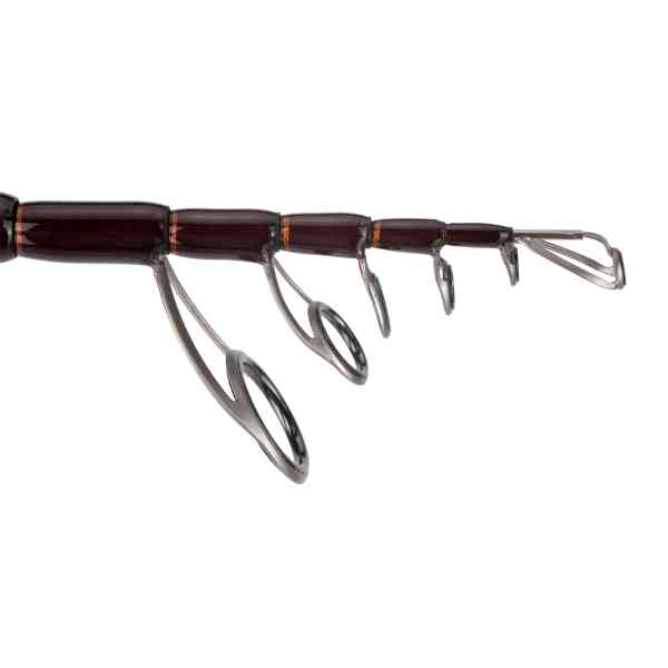 Dette er teleskopstanga for den kresne entusiasten, en stang som føles og oppfører seg som en langt dyrere, flerdelt fiskestang, men som altså har de veldig forenklende transportegenskapene til en teleskop. Stangen kommer ellers i en lekker, burgunderrød farge som alle Arctic Trout-entusiaster vil dra kjensel på. Beskyttelseshette og futteral følger også med slik at stangen kommer hel frem til fiskeplassen!