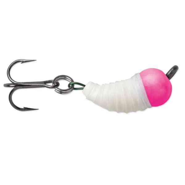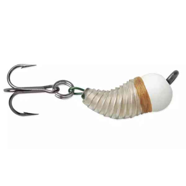 Den lille, larvelignende formen gir et realistisk uttrykk som trigger hugg. Blyfri konstruksjon i tungsten gir høy følsomhet og tydelige ekko på både tradisjonelle ekkolodd og fremoverrettet sonar. Utstyrt med VMC® treblekrok for bedre kroking. Leveres i polert metall eller Ultra Glow-farger med etterlys i opptil 15 minutter.